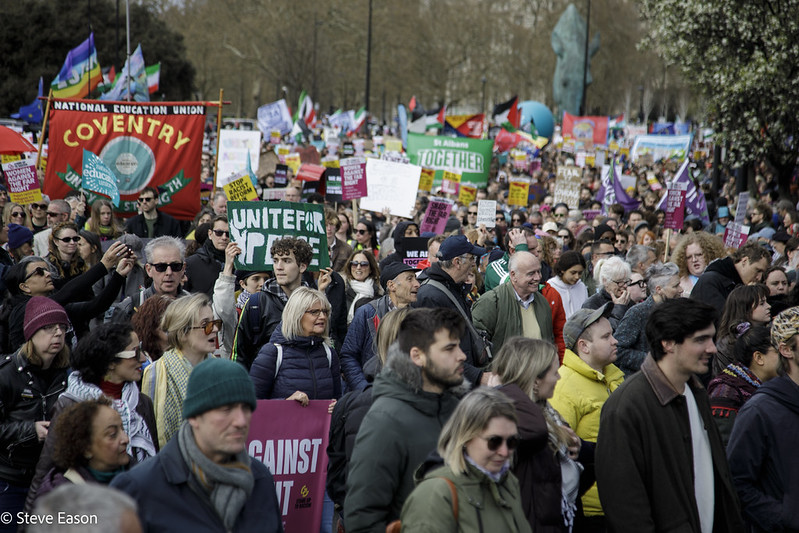 De nombreux syndicats avaient mobilisé leurs membres et déployé leurs banderoles dans les rues de Londres, la NEU et UNISON ayant la présence la plus forte. La question de savoir pourquoi cette section de la manifestation était si nettement plus importante – au point de ressembler à elle seule à une marche de taille respectable – que ce que ces mêmes syndicats ont réussi à mobiliser contre le génocide des Palestiniens est une interrogation que de nombreux militants soulèveront sans aucun doute dans les semaines à venir.