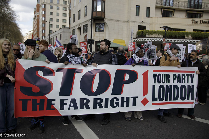 Quant au Parti travailliste, il n’a joué aucun rôle officiel dans la mobilisation pour la journée. La direction aurait pu facilement se rallier à la manifestation et y envoyer un membre du cabinet fantôme ; Starmer aurait pu délivrer un message anti-Reform sans grande portée, mais rien, pas un mot. Même la gauche, l’alliance Mainstream/Momentum, n’était pas visible. Trois ou quatre banderoles du Parti travailliste ont quand même fait leur apparition – la bureaucratie ne pouvait guère renouveler le blocage des militants qui voulaient les porter lors des marches de solidarité avec la Palestine. Le Labour devrait s’inquiéter : nombre de ceux qui ont manifesté sont des gens qui votaient pour lui autrefois, qui ne le font plus, et qui s’organisent de plus en plus.