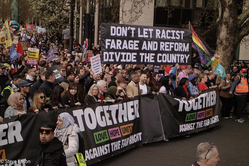 La marche de l’Alliance Together contre l’extrême droite, samedi 28 mars, a probablement été la plus grande manifestation antifasciste de l’histoire britannique. Elle était comparable à certaines des premières grandes manifestations de solidarité avec la Palestine.